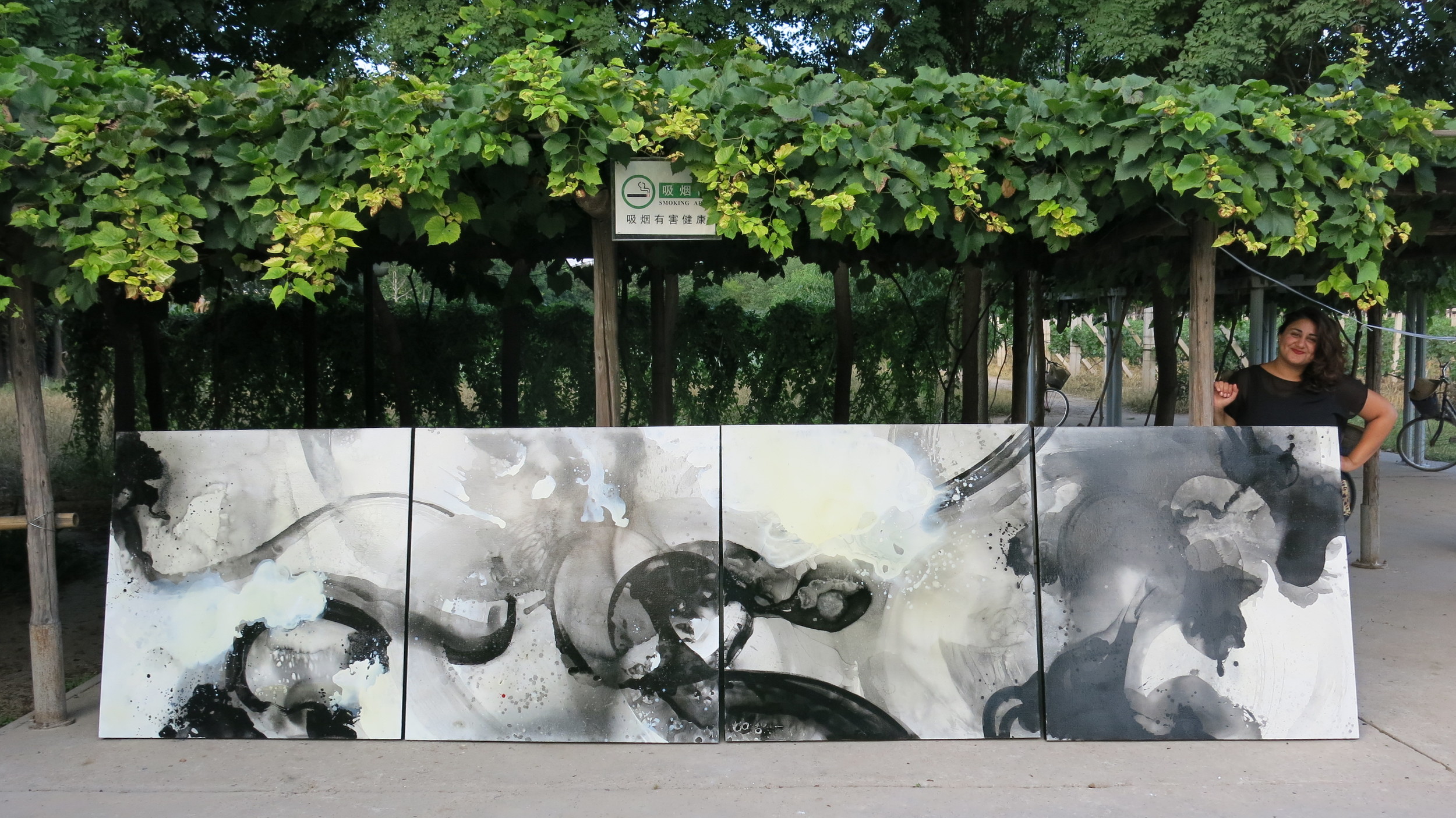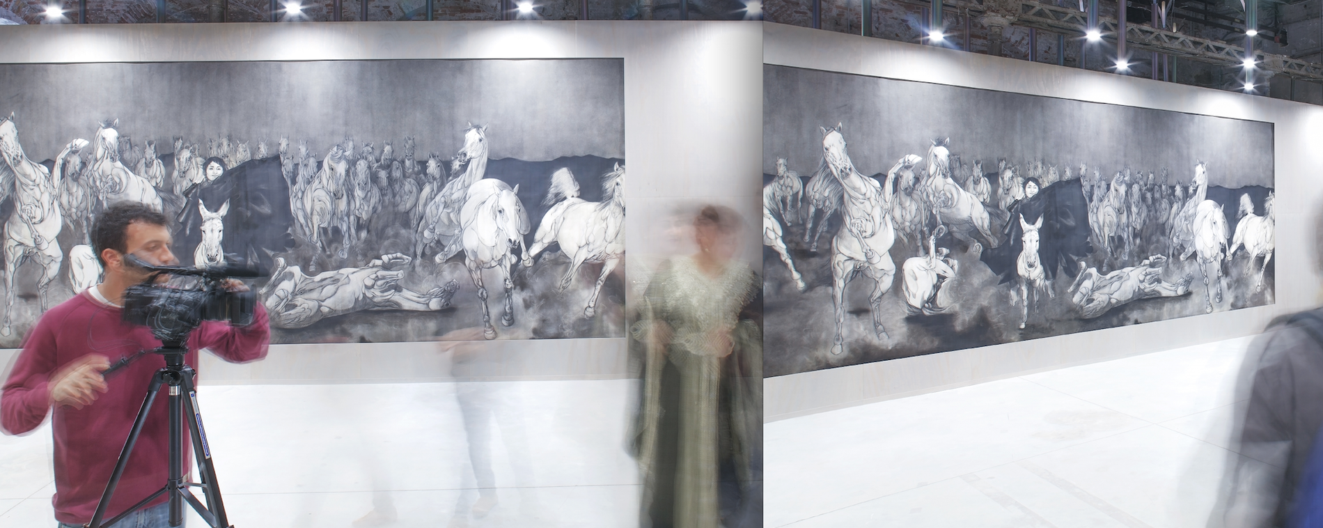 Voice of Rain emerged through an unexpected collaboration between the artist and natural forces, as rainfall transformed the surface of the work.