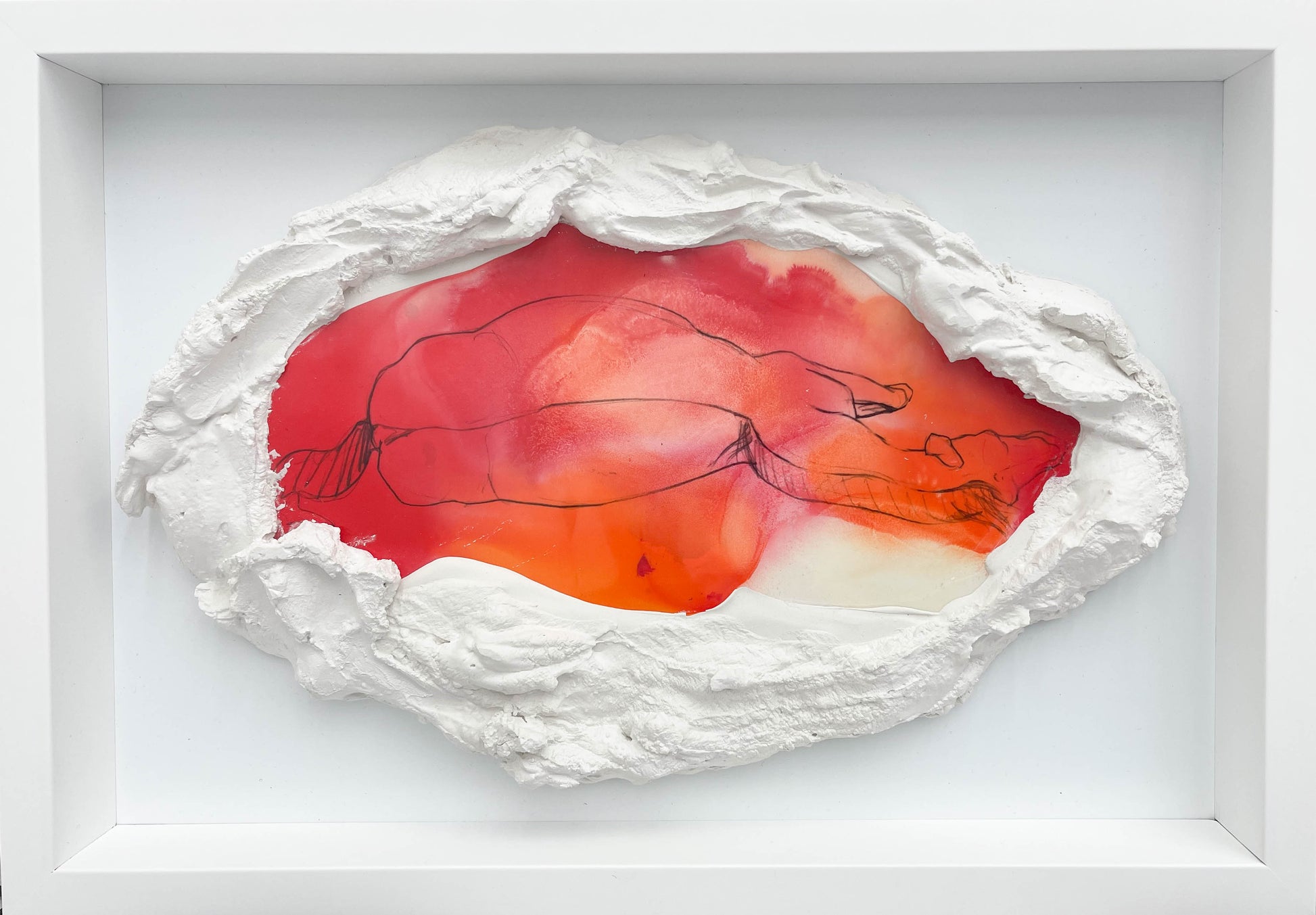 Acrylic painting of a horse on plastic and gypsum mounted in a Frame.