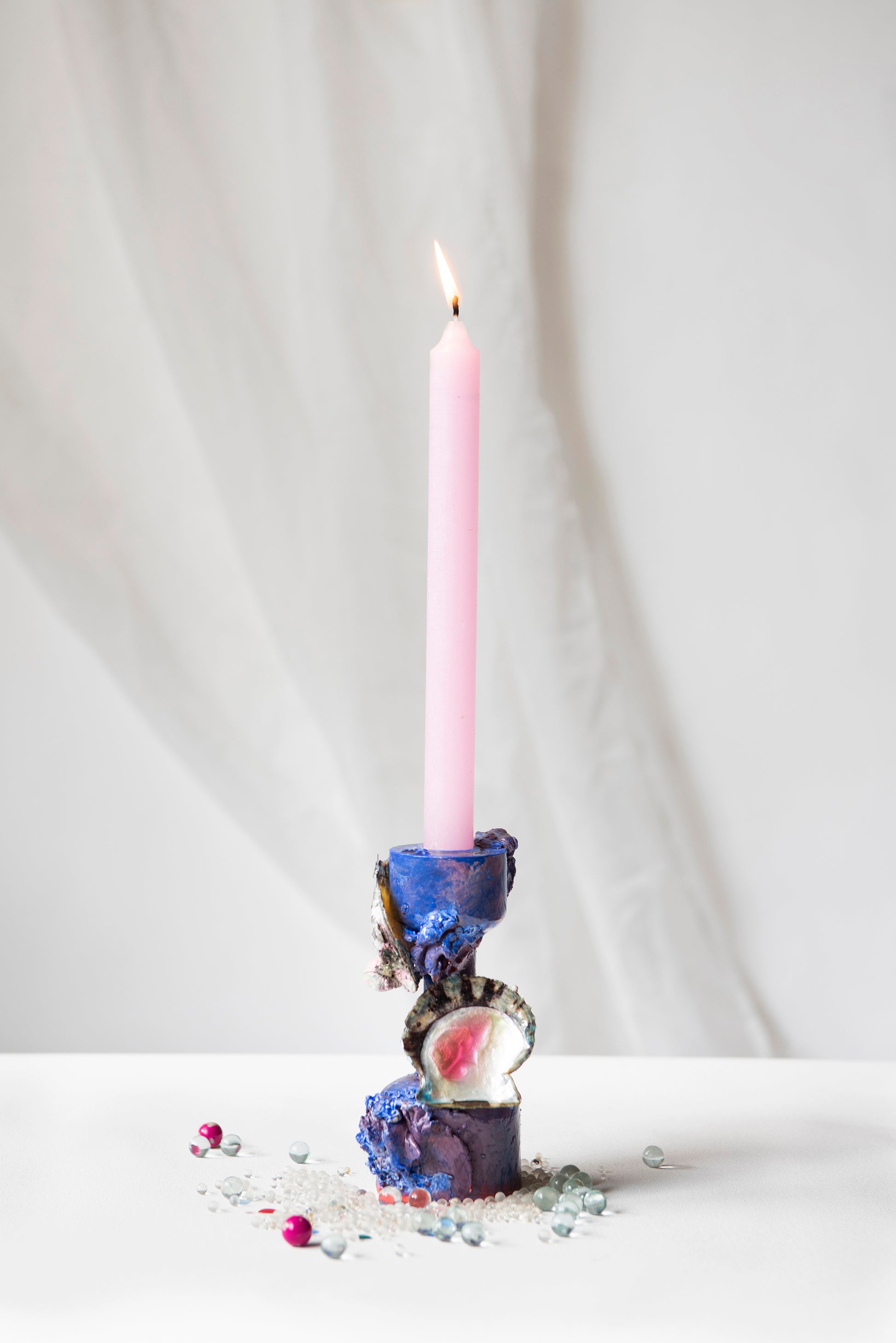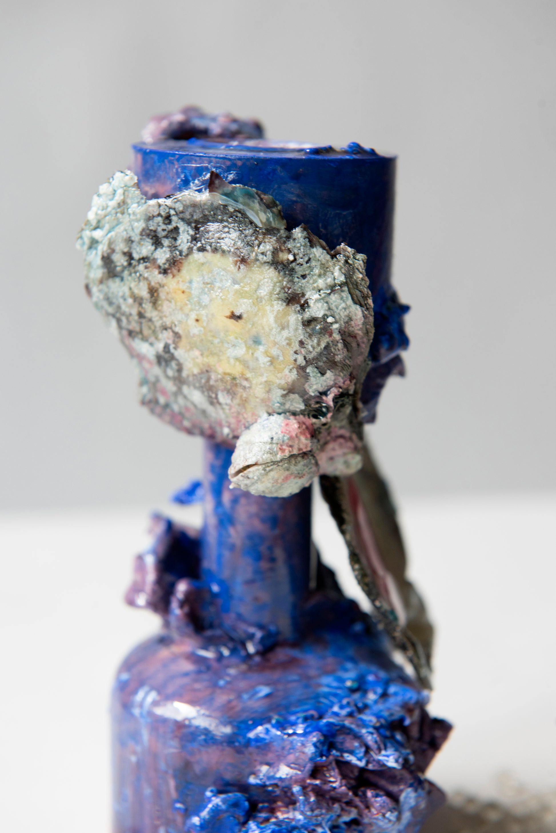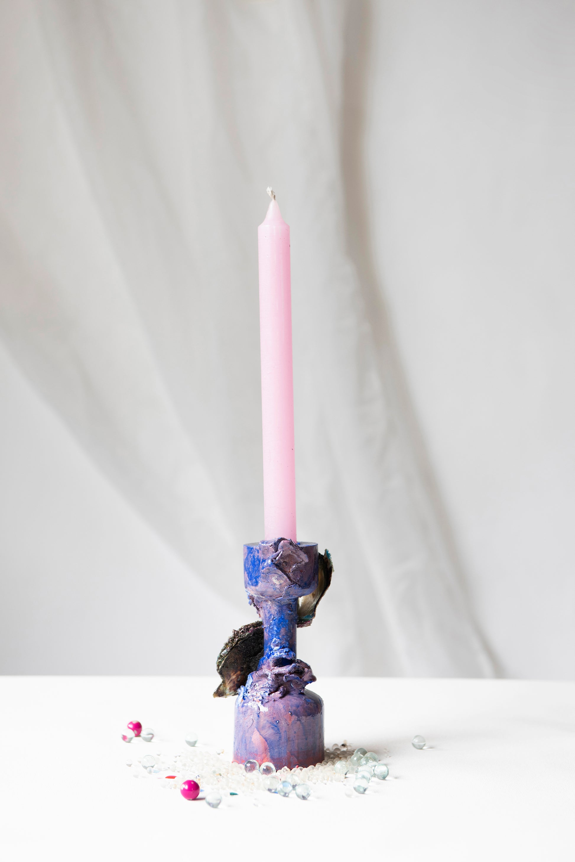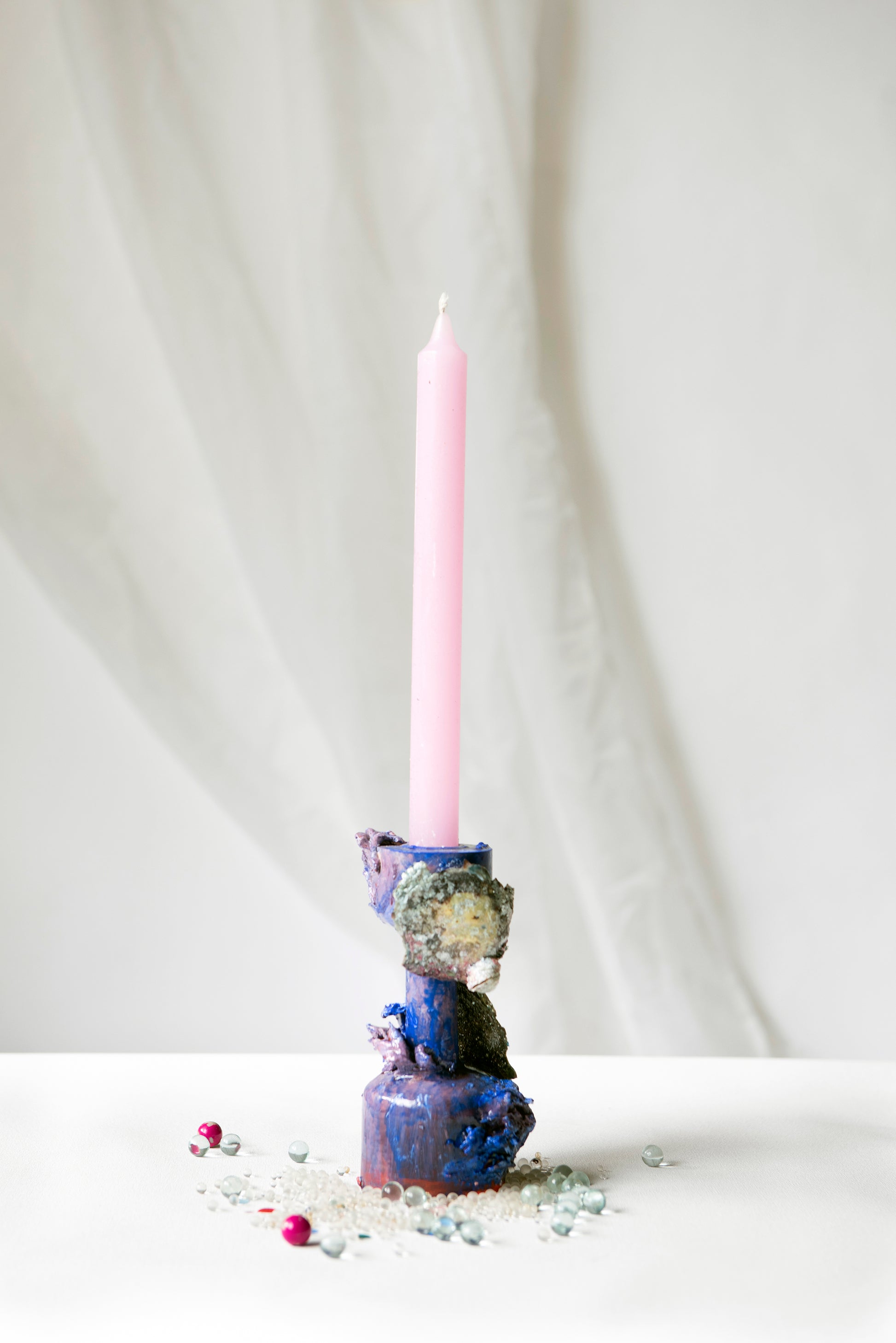 This series flows with "ooze aesthetics", merging textures that speak to both sea and flesh. Each vessel is unique no two are alike and may be used to hold a single taper candle or stand alone as a tactile art object.
